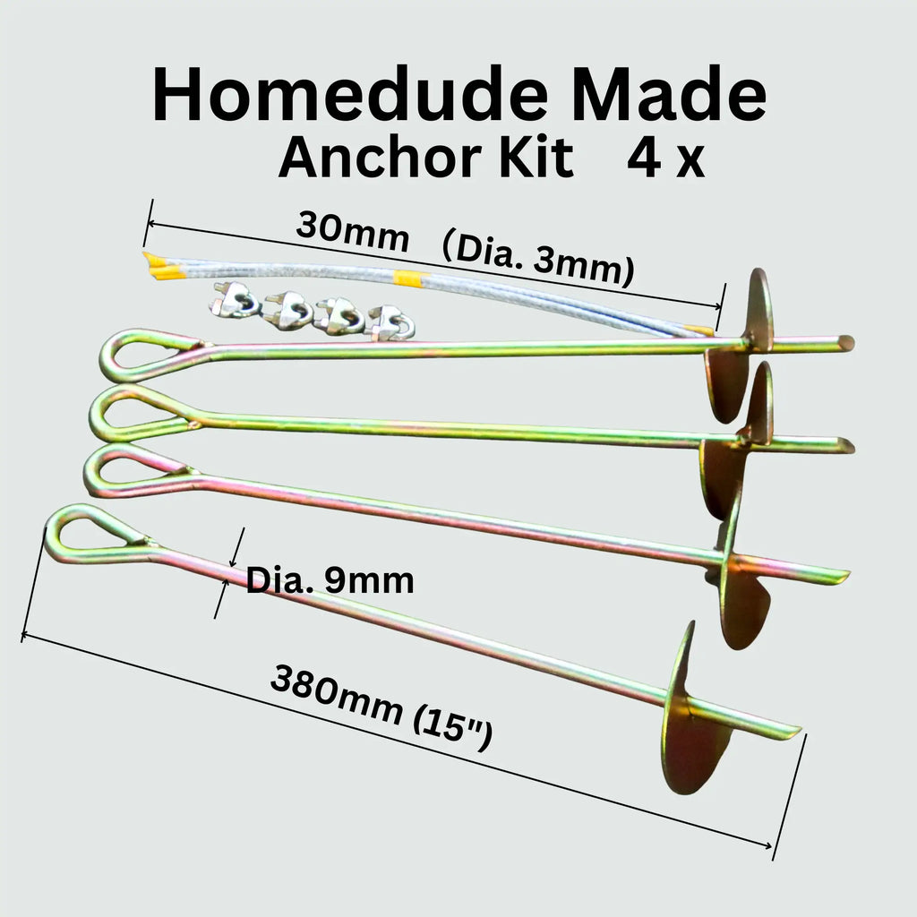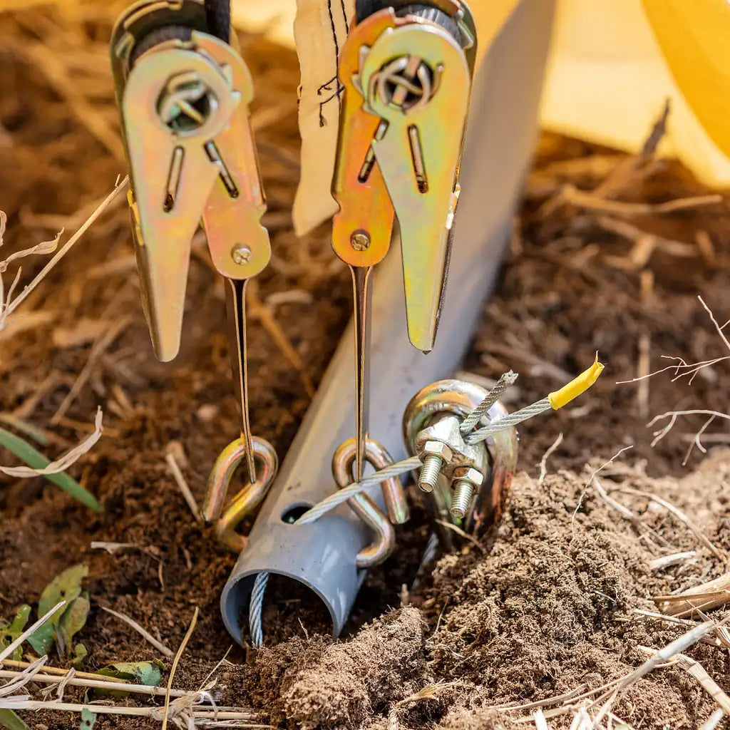 - Anchors: Ground stakes, ratchet straps & wind ropes